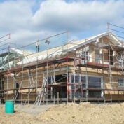 Seit Freitag stehen beide Doppelhäuser in Much, Oberbirrenbachshöhe. Nun wird der Bauherr den Innenausbau selber ausführen.