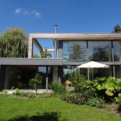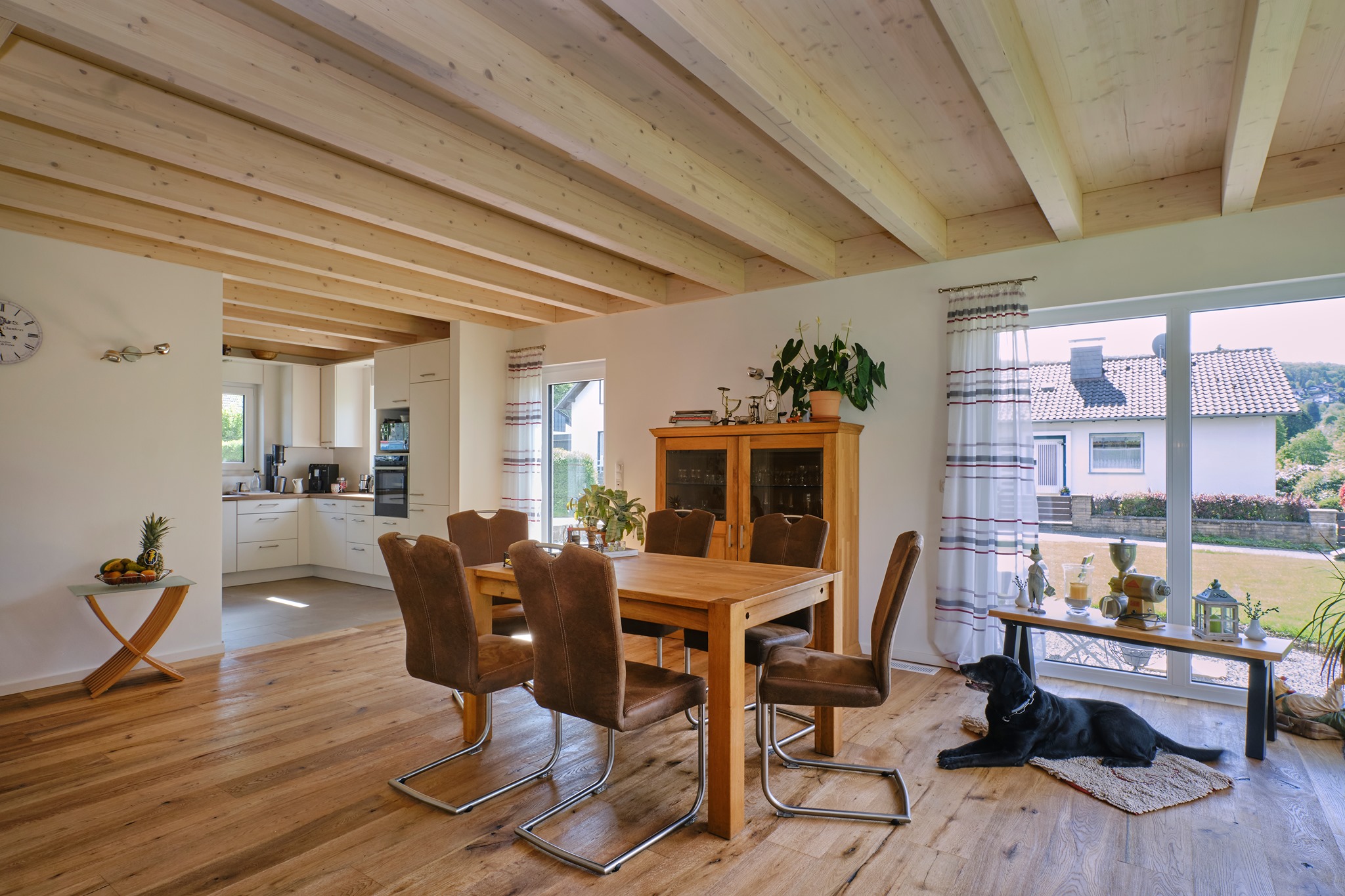Bei diesem Haus ist das Highlight die große Pfosten-Riegel-Fassade und der offene Wohn-/Essbereich.